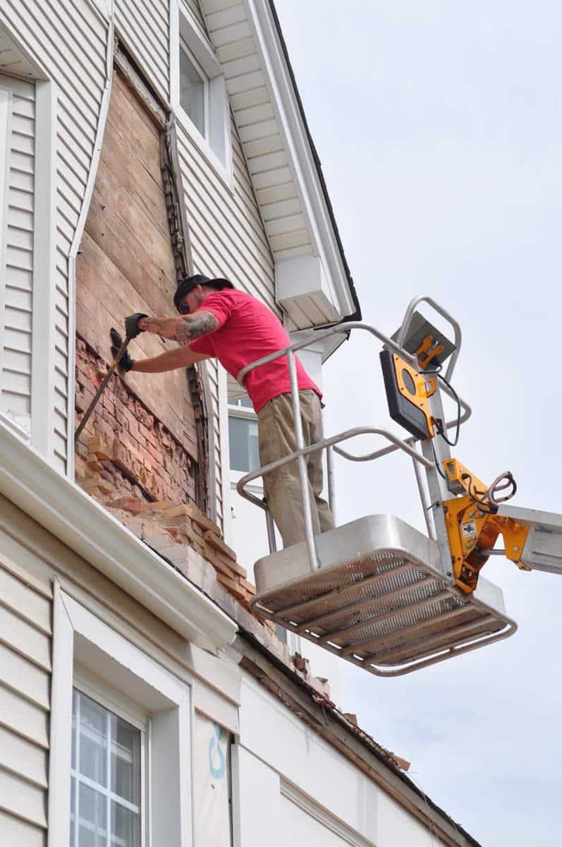 Hand demolition is the removal of building structure by hand. We have a team of workers who specifically deal with this type of work. Hand demolition can be interior or exterior. Some examples would be the removal of a kitchen or total interior gut of a house; or the removal of a deck or porch outside!